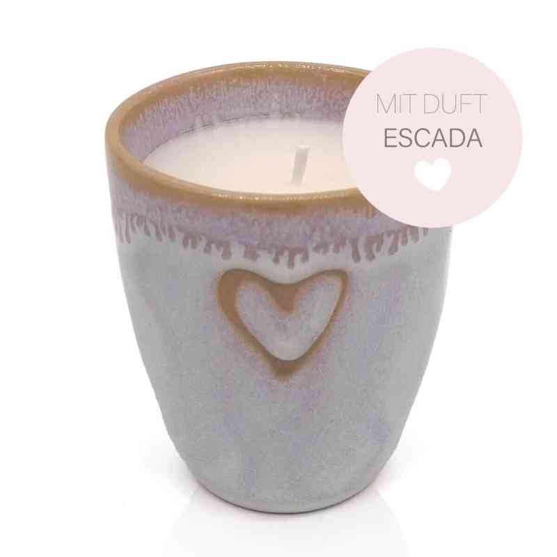 Duftkerze ESCADA im Stoneware-Becher polarweiß ca. 7,6x6,7 cm / 150 ml mit Herzmotiv